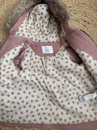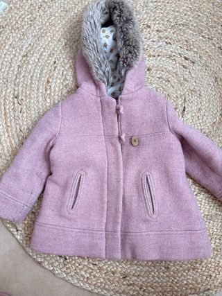 Chaqueta de Zara en color rosa, ideal para mantener abrigado. - Capucha con detalle de pelo. - Cierre de botones. - Bolsillos delanteros.