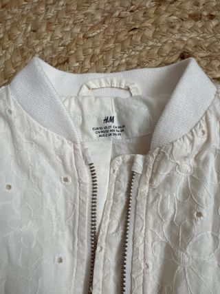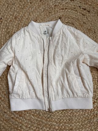 Chaqueta de H&M para niña con un bonito diseño bordado. - Color blanco roto. - Cierre de cremallera. - Puños y bajo elásticos.