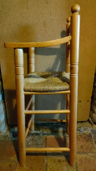 Trona de madera y mimbre