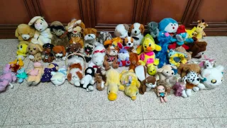 Lote de peluches de diferentes animales y personajes. Se vende todo el Lote Hay 49 peluches Están en perfecto estado
