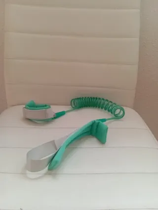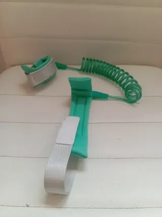 Correa de seguridad para niños, para muñecas ideal para mantenerlos cerca en lugares concurridos. - Color verde menta. - Correa extensible y enrollable. - Cierre de velcro ajustable.