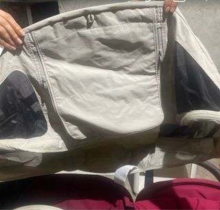 Capota de verano para carrito Bugaboo. Color gris claro con logo blanco. - Tejido ligero y transpirable. - Diseño con círculos concéntricos blancos.