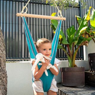 Silla saltarina para bebé de la marca Petite Planète, ideal para que los más pequeños jueguen y se diviertan de forma segura. Incluye bolsa de transporte. - Estructura de madera. - Tejido de malla transpirable. - Ribete con estampado floral. - Cuerda de suspensión. - Mosquetón de seguridad. . El arnés saltador soporta hasta 11 kg, lo que corresponde a un bebé de 15 o 18 meses.