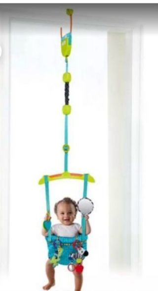 Saltador para bebés de la marca Bright Starts, ideal para bebés de 6 meses y hasta 25 libras. Permite que los pequeños se diviertan saltando de forma segura. - Diseño colorido y atractivo. - Fácil de instalar en el marco de la puerta.