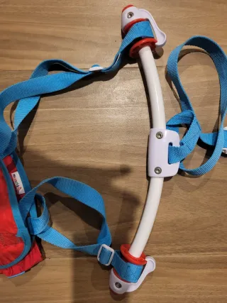 Columpio saltador para bebés, ideal para que los más pequeños se diviertan de forma segura. - Asiento acolchado con estampado colorido. - Estructura de plástico resistente en color turquesa y azul. - Arnés de seguridad. Muy divertido, mi peque se lo pasaba genial.