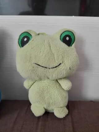 Conjunto de tres peluches, perfectos para coleccionar o regalar. - Peluche de oso azul. - Peluche de rana verde. - Peluche de oso azul.