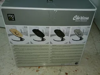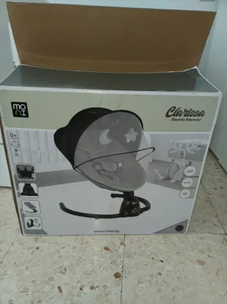 Hamaca eléctrica para bebés de la marca Moni, modelo Clarissa. - Apta desde 0 meses. - Incluye mosquitera. - Panel táctil. - Detector de movimiento. - Conexión Bluetooth. La hamaca se me cayó un dia y no funciona bien el girar sola, me imagino que alguien que se empeñe en saber lo que le pasa le costará poco arreglarla. Por lo demás perfecta, se puedee girar manual y va el Bluetooth.