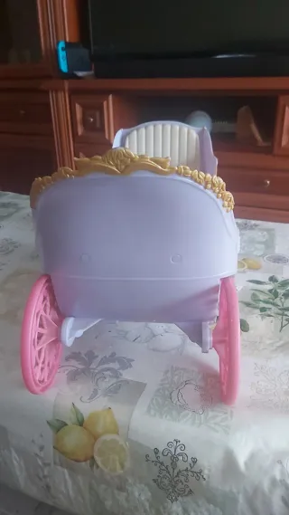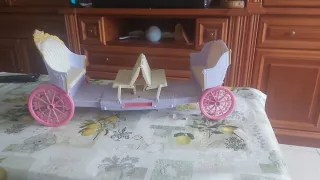 Maleta de juguete para muñecas, ideal para recrear historias. - Carroza de dos secciones. - Ruedas rosas decorativas. - Asientos interiores.