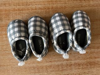 Conjunto de dos pares de zapatillas para bebé con estampado de cuadros. - Diseño de cuadros grises y blancos. - Cierre con cordón. - Marca: UNIT* SHOES.