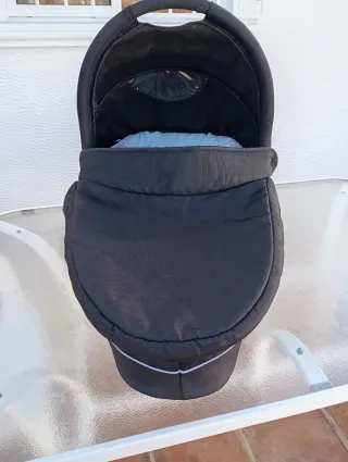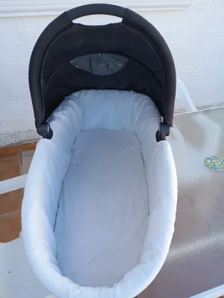 Liquido Capazo Moisés de la marca TORCK en color negro. - Moisés con capota y Cobertor para el frio. Largo interior 90 cm Ancho interior 35 cm Altura sin capota 30 cm - Incluye colchón interior. - Asa de transporte y patas de plástico Escucho Oferta