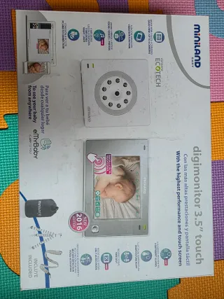 Vigilabebés digital Miniland Digimonitor 3.5 con pantalla táctil. - Conexión a PC y TV. - Batería dura poco. Mejor conectarla con cable - Función vibración. - Zoom, vídeos y fotos. - con sonido para hablarle y calmar al bebé - 5 melodías y luz de compañía. - Incluye eMyBaby app. - Detección de movimiento y activación por voz. - Modo solo audio. - Bidireccional (Two-Way). - Alerta de temperatura. - Edición 2016.