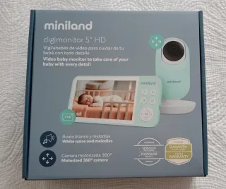 Vigilabebés Miniland Digimonitor 5 HD. En perfecto estado, cerrado de fábrica. Lo vendemos porque no lo usamos y se nos ha pasado el periodo de devolución. Características: - Pantalla de 5 pulgadas. - Resolución HD. - Ruido blanco y melodías. - Cámara motorizada 360°. - Servicio de atención al cliente. - Garantía de por vida.