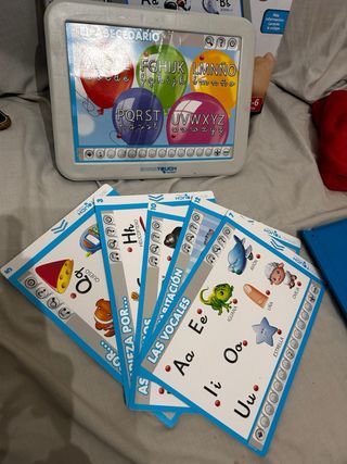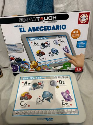 Juego educativo Educa Touch Junior El Abecedario. - Diseñado para niños de 3 a 6 años. - Incluye voz y canciones. - Fomenta el aprendizaje de letras y palabras. - Pantalla táctil interactiva. La primera lamina esta pegada las demas estan intactas que ni las llego a usar Cuesta 25€ nuevo