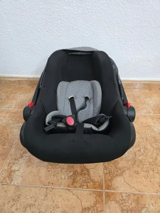 Silla de coche para bebé en color negro, con reductores y arnés de seguridad. - Incluye cojín reductor para recién nacidos. - Arnés de seguridad de 5 puntos. - Funda extraíble y lavable.