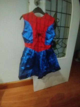 Disfraz de Spiderman para niña, talla 4 años. Ideal para fiestas o juegos. - Diseño inspirado en Spiderman. - Colores rojo y azul. - Tejido brillante.