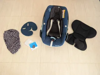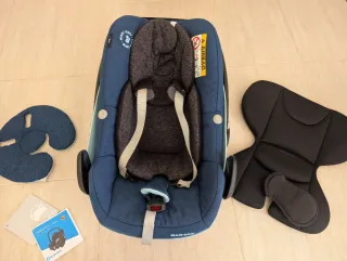 Silla de coche Maxi-Cosi Pebble Pro i-Size, diseñada para la seguridad y comodidad de los más pequeños. - Tapicería en tonos azules y grises. - Incluye reductores para recién nacidos. - Acolchado interior para mayor confort.