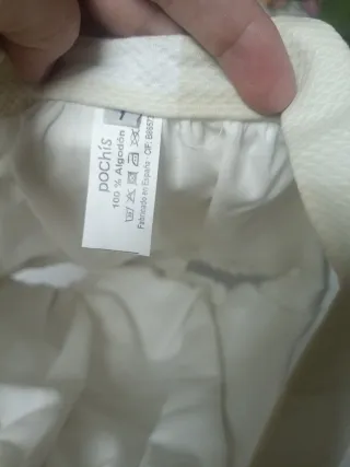 Rebeca de punto en color blanco roto, ideal para bebés de 6 a 9 meses. - Marca: Mayoral - Talla: 6-9 meses - Color: Blanco roto - Diseño con cuello redondo y cierre de botones. - Acabado con puntilla en mangas y bajo.
