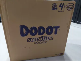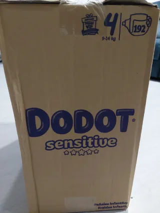 Disponibles 2 Cajas de pañales Dodot Sensitive, talla 4. - 192 unidades, cada caja. - Indicados para pesos de 9-14 kg. - Diseño Sensitive para pieles delicadas. Con barreras antifugas. Cada caja 80€, en Amazon se vende cada caja a 92€. Están las cajas sin abrir, tal como llegaron de Amazon.