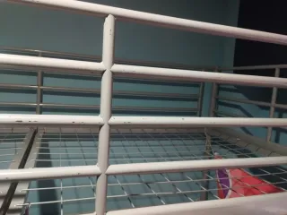 Litera de metal con acabado blanco. Ideal para optimizar el espacio. - Estructura tubular resistente. - Diseño de barras de seguridad. - Base de somier de rejilla.
