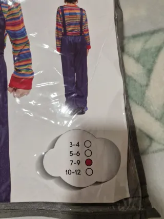 Disfraz infantil con estampado de rayas multicolores y pantalón azul. - Talla: 7-9 años. - Diseño de tirantes. - Manga larga.