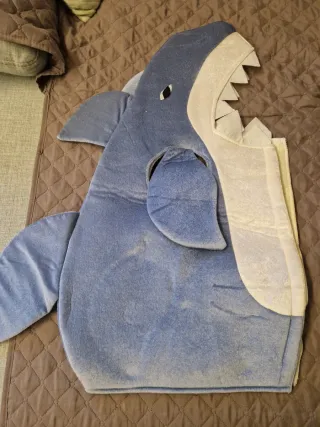 Disfraz de tiburón para niños de 3 años. Es un disfraz divertido y original. - Diseño de tiburón azul. - Aberturas para brazos. - Boca con dientes de fieltro.