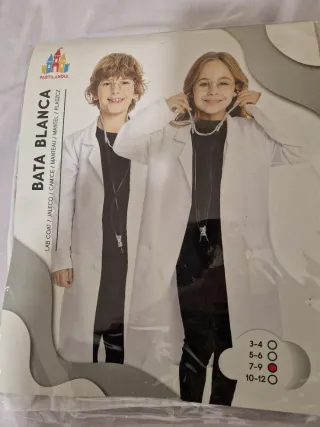 Disfraz de bata blanca para niños, ideal para juegos o fiestas temáticas. - Talla 7-9 años. - Incluye bata y estetoscopio de juguete.