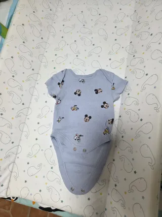 Body de bebé de manga corta con estampado de Mickey Mouse. - Talla 0-3 meses. - Suave al tacto, ideal para la piel delicada del bebé.