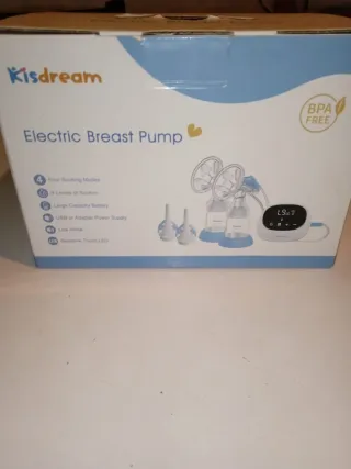Sacaleches eléctrico de la marca Kisdream, diseñado para una extracción cómoda y eficiente. - 4 modos de succión. - 9 niveles de intensidad. - Batería de gran capacidad. - Carga vía USB o adaptador. - Bajo nivel de ruido. - Pantalla LED táctil sensible.