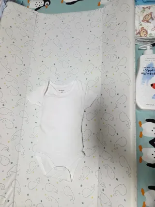 Body de bebé de manga corta. - Talla para 0-3 meses. - Cuello redondo. - Cierre de broches en la parte inferior.,