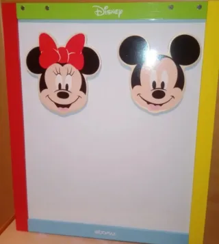 Pizarra infantil Disney con Mickey y Minnie. Doble cara para pintar y dibujar. Nueva, sin ningún uso, no se ha montado, con los plásticos protectores aún. - Una cara es pizarra negra imantada. - La otra cara es pizarra blanca. - Incluye bandeja para accesorios. - Diseño con Mickey y Minnie Mouse. Pizarra imantada para niños. Plegable. Madera