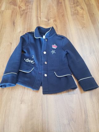 Chaqueta azul marino para niña de la marca Mayoral. - Diseño tipo militar. - Detalle de corona y estrella bordada. - Inscripción love en un lateral. - Ribetes dorados en bolsillos y puños. - Cierre de botones dorados.