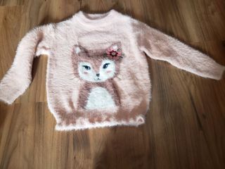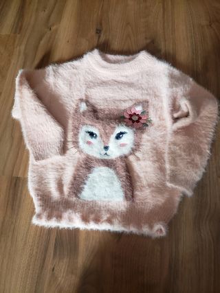 Jersey de invierno para niña de la marca C&A. - Talla 5 años. - Diseño con cara de zorro y flor. - Tejido suave y peludo.