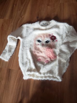 Jersey de invierno para niña, talla 5 años. Es un jersey muy suave y calentito con un diseño de búho. - Diseño de búho con lentejuelas y detalles florales. - Tejido muy suave y esponjoso. - Ideal para los días fríos.