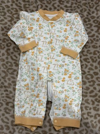 Pijama de una pieza para bebé, talla 6 meses. Con un adorable estampado floral y de conejitos. - Manga larga. - Cierre de botones. - Cuello redondo. - Pies con abertura (no está el pie cerrado)