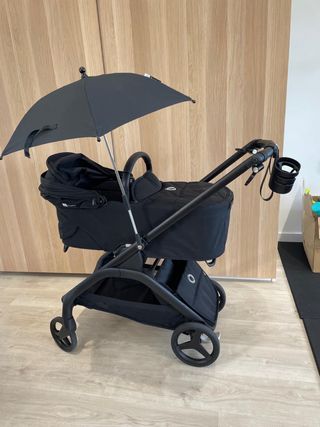 Carro de bebé Bugaboo en color negro, con 8 meses de uso. - Chasis negro. - Capazo. - Silla. - Capota. - Cesta de compras.