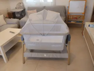 Minicuna Kikka boo con mosquitera. - Color gris. - Incluye mosquitera y saco para transportarla. - Diseño moderno.