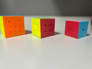 Lote de tres cubos de Rubik de diferentes tamaños. Ideal para coleccionistas o para iniciarse en el mundo del speedcubing. - Cubo 2x2. - Cubo 3x3. - Cubo 4x4.