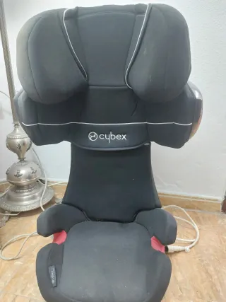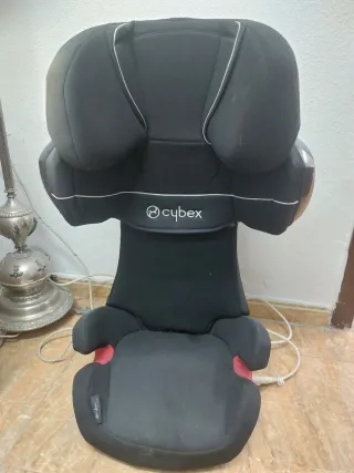 Silla de coche Cybex con sistema Isofix. Diseñada para la seguridad y comodidad. - Color negro. - Logo de Cybex visible. En muy buenas condiciones.Solo tiene desgastada la tapicería que da a la ventana por el sol.