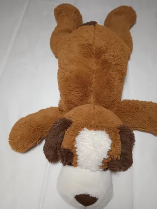 Adorable peluche de perro con un diseño tierno y suave. - Color principal marrón con detalles blancos y marrones. - Material de felpa muy agradable al tacto. - Orejas caídas y hocico pronunciado.