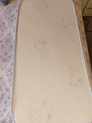 Colchón para cuna con un adorable estampado de conejos en toda la superficie. Perfecto para el descanso del bebé. - Diseño unisex con conejitos. - Tejido suave y resistente. - Bordes reforzados para mayor durabilidad.