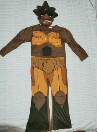 Disfraz de Gormiti para niños. Perfecto para fiestas temáticas o Halloween. - Incluye máscara y traje completo. - Diseño inspirado en los personajes Gormiti. - Colores marrón, naranja y verde.