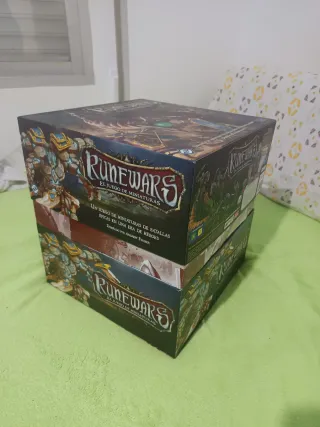 Runewars: El Juego de Miniaturas. SIN ESTRENAR, por falta de tiempo - Con todas las espabsiones del ejercito de no muertos y de caballeros (pueden verse en la foto) - Inserto casero dentro de la misma caja original para poder guardar bien el juego completo junto a los componentes y las miniaturas tanto del juego base como expansiones. Aumento de la caja en altura, está puesto para que se vea bonito expuesta la caja, aún que la carte de detrás se ve el cartón pluma como se aprecia en la foto ( aún así no se nota). - además en el lateral de la caja hay un pack de inicio para otro jugador también sin estrenar. - Figuras sin pintar