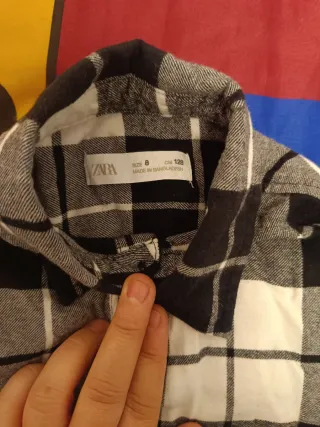 Camisa de manga larga con estampado de cuadros en blanco y negro. - Cuello camisero. - Cierre de botones. - Puños abotonados. Talla 8 zara