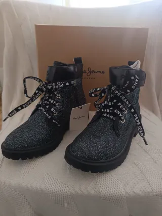 Botas de la marca Pepe Jeans con un diseño brillante y moderno. - Acabado con purpurina. - Cierre de cremallera y cordones. - Suela de goma. - Detalle de logo en la cinta. Botas Hatton en color Azul verdoso Purpurina. Con cierre Cordones, cremallera lateral y velcro. Calzado para este invierno ☃️ y éstas Fiestas 🤶🏼. #regalonavidad