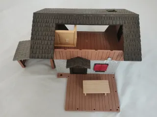 Refugio de montaña Playmobil, modelo 5422. Solo lo que se ve en la foto. Buen estado. - Diseño de casa alpina. - Incluye mesa y banco de madera. - Ventana con contraventanas rojas.