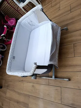 Minicuna con un bonito estampado de estrellas grises. Perfecta para los primeros meses del bebé. - Laterales de malla transpirable. - Colchón incluido. - Estructura metálica.