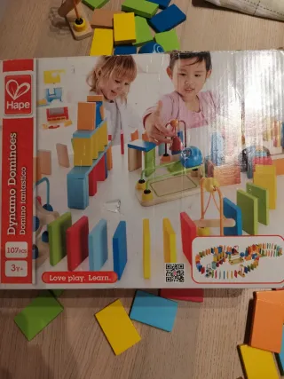 Set de dominó dinámico de la marca Hape, ideal para construir y crear. Incluye 107 piezas de madera. - Piezas de madera de colores. - Fomenta la creatividad y la motricidad. - Apto para mayores de 3 años.