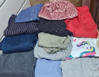 Lote de ropa para niña en talla 11-12 años. •PUEDES FORMAR TU PROPIO LOTE CON LO QUE MAS TE GUSTE Y TE LO SUBO •NO ME DEJA PONER MAS FOTOS ☆EL LOTE INCLUYE 12 PIEZAS DE ROPA PRÁCTICAMENTE NUEVA: - Mallas azules con estrellas. - Mayas negra con lunares. - Rebeca roja. - Camiseta blanca con unicornio. - Pantalón vaquero azul. - Mayas gris. - Mayas verde. - Camiseta gato gris. - Pantalón de rayas azules y marrones. -Falda lentejuelas rosa. -Camisa rayas. -Peto vaquero negro. NO ME DEJA SUBIR MAS FOTOS DE LAS DEMAS PRENDAS