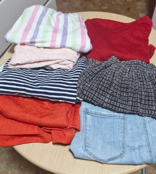 Lote de ropa para niña de 9 a 10 años. •PUEDES FORMAR TU PROPIO LOTE CON LO QUE MAS TE GUSTE Y TE LO SUBO. ☆EL LOTE INCLUYE 7 PIEZAS DE ROPA PRÁCTICAMENTE NUEVA: - Vestido rayas azul marino(3€) - Vestido rayas verano(2€) - Falda vaquera(2€) - Rebeca roja brillo(3€) - Vestido rojo(4€) - Vestido rosa(3€)