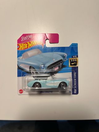 ‼️HOT WHEELS‼️ Hot Wheels promocional de la película de Barbie de 2023. - Modelo: 1956 CORVETTE AZUL 🚙🩵 - TOTALMENTE SELLADO 📦✅💥 - Pequeño desperfecto en la zona del enganche 😵💫❌